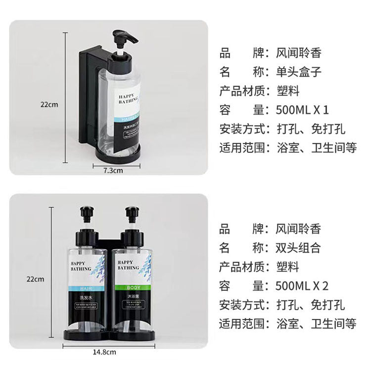 Hotel soap dispenser manual Press double-headed three-head shampoo shower gel punch-free hand sanitizer box 500ML