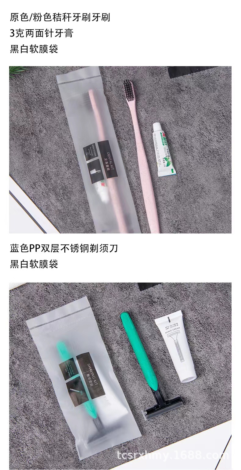 Color: [Hot] CPE soft frosted bag ~ tooth set suit (khaki yellow straw toothbrush +3G double-sided needle toothpaste)